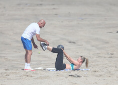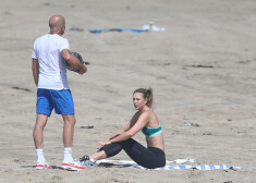 Marija Šarapova trenējas Losandželosas pludmalē