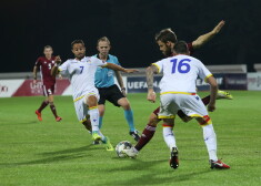 Latvijas futbolisti UEFA Nāciju līgas spēlē Rīgā cīnās ar Andoru
