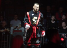 FOTOREPORTĀŽA: Kambala atgriešanās cīņā pārliecinoši nokautē baltkrievu bokseri