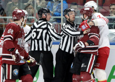 Rīgas "Dinamo" un Helsinku "Jokerit" hokejisti pamatīgi izvicinās dūrēm