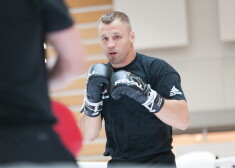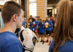 FOTO: Mairis Briedis savu vārda dienu nosvin publiski - boksējoties lielveikalā