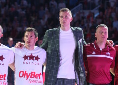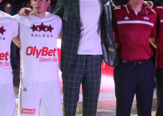 Kristaps Porziņģis Latvijas un Krievijas basketbola izlašu pārbaudes spēlē