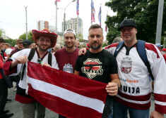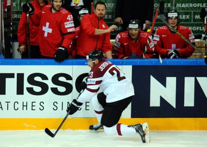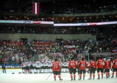 Pirmo reizi PČ Prāgā skan Latvijas himna - mūsu hokejisti uzvar Šveici