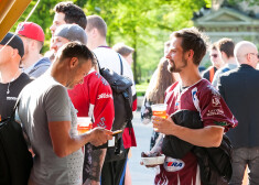 Latvijas hokeja fani Slovākijā pirms mūsu izlases spēles ar Austriju 2019. gadā