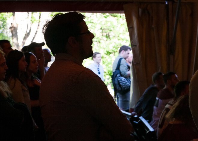 Ieskats Kongresu nama fanu teltī spēlē pret ASV, kas noslēdzās ar mūsu hokejistu zaudējumu papildlaikā ar 2:3.