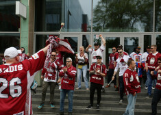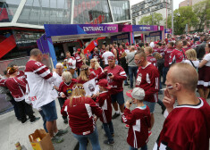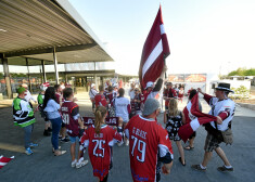 Līdzjutēji pirms pasaules hokeja čempionāta spēles hokejā starp Latvijas un Kanādas valstsvienībām "Jyske bank boxen" Arēnā.