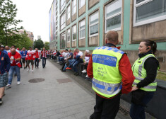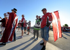 Hokeja fani Dānijā pirms Latvijas izlases spēles pret Kanādu 2018. gada 14. maijā