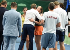 Sākt jaukto dubultspēli Latvijai gods izkrita Kārlim Ozoliņam un Aļonai Ostapenko, Anastasijai Sevastovai un Ernestam Gulbim iesākumā paliekot rezervē.