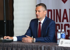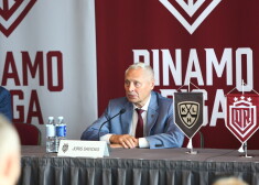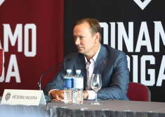 Jaunais Rīgas "Dinamo" treneris Pēteris Skudra preses konferencē stāsta par nākotnes mērķiem