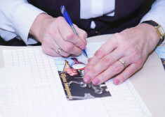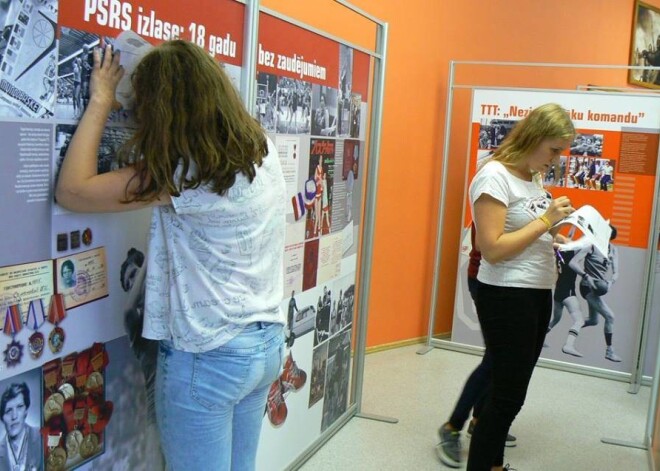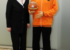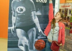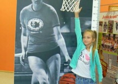 Uļjanas Semjonovas kausa izcīņā basketbolā meitenēm dalībnieces Latvijas Basketbola muzejā raksta laba vēlējumus leģendārajai basketbolistei.