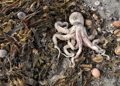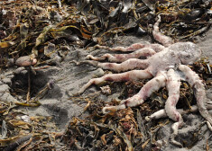 Halaktirskas pludmalē Kamčatkā izskalo daudz mirušu jūras dzīvnieku