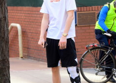 Nacionālās basketbola asociācijas (NBA) komandas Ņujorkas "Knicks" latviešu zvaigzne Kristaps Porziņģis divas nedēļas pēc ceļgala operācijas sācis pārvietoties bez kruķu ...