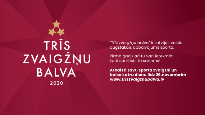 Tautas balsojums par #TrīsZvaigžņuBalva2020 nominācijām ir sācies!⭐️⭐️⭐️ Atbalsti savu sporta zvaigzni, balsojot https://t.co/Q74rXE4zb5. Balsot par 10 nominācijām vari katru dienu, bet iegaumē - 1 reizi dienā no 1 e-pasta adreses! 😉Balsojums noslēgsies 29.novembrī! 🤩 pic.twitter.com/8NYcN66xG1