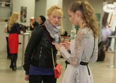 Modele Alise Znaroka klātienē vēro, kā viņas mazā draudzene Simona defilē „Jūrmalas kūrorta kolekcijas 2014” modes skatē.