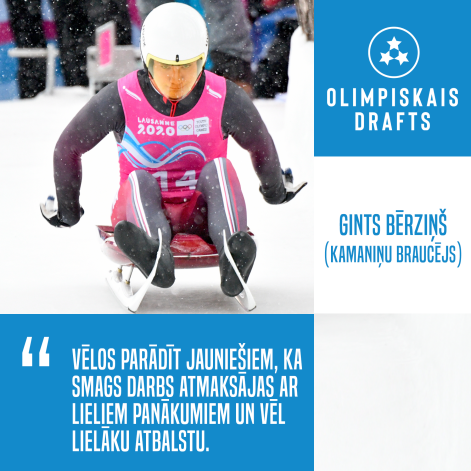 Kamaniņu braucējs Gints Bērziņš ir viens no talantīgākajiem jauniešiem kamaniņu sporta vēsturē un jau 18 gadu vecumā spēj konkurēt ar visiem pasaules labākajiem. Jau šobrīd viņa kontā ir olimpiskā zelta medaļa - no 2020. gada Jaunatnes ziemas olimpiskajām spēlēm. Atliek pierādīt sevi arī pieaugušo sportā - Pekinas 2022. gada ziemas olimpiskajās spēlēs.