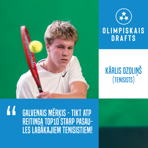 Tenisists Kārlis Ozoliņš apņēmīgi virzās uz savu mērķi - iekļūt pasaules tenisa elitē. Jau šobrīd 18 gadus vecais tenisists veiksmīgi apvieno dalību gan junioru, gan pieaugušo konkurencē - ITF junioru reitingā Kārlis ieņem augsto 6. vietu, bet 2020. gadā debitēja Latvijas izlases sastāvā Deivisa kausa posmā Ēģiptē.