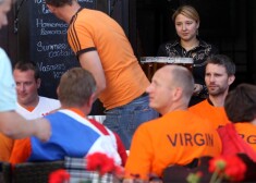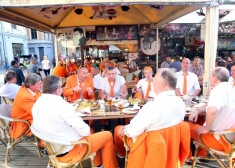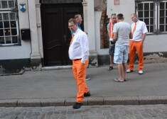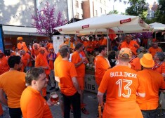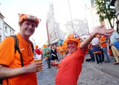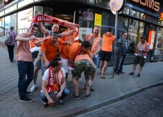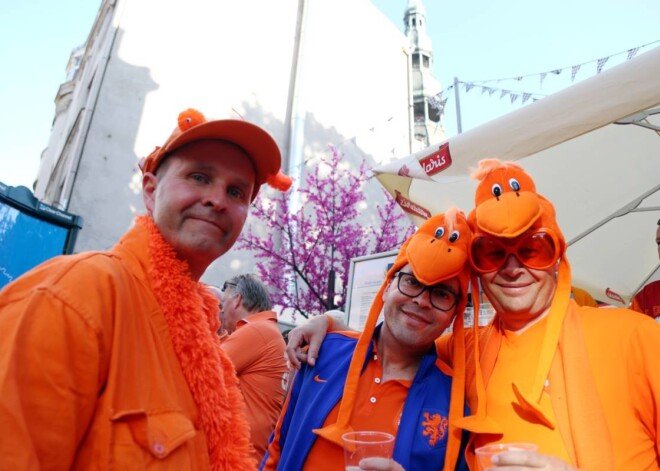 Nīderlandes futbola izlases fanu "oranžā armija" ieņem Vecrīgu