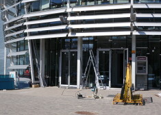 Būvnieki steidz paveikt pēdējos darbus Daugavas stadiona ledus hallē, kur visām 16 pasaules čempionāta izlasēm paredzēts aizvadīt treniņus.
