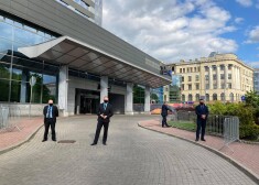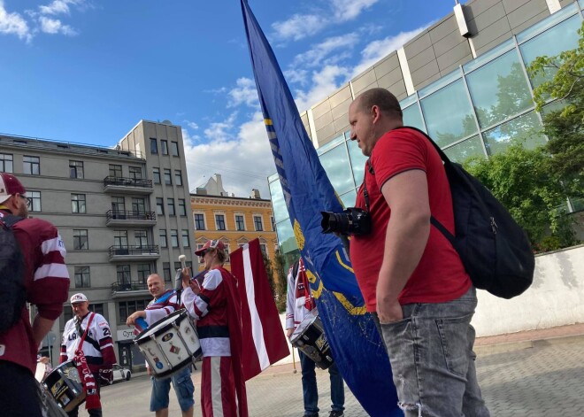 Fani pirms izšķirošās spēles ar Vāciju pie viesnīcas "Latvija" atbalsta Latvijas izlasi