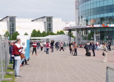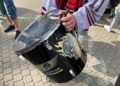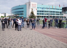 Hokeja skatītāji ierodas uz Latvijas spēli