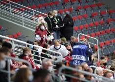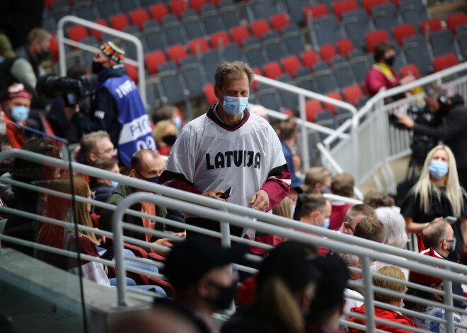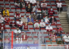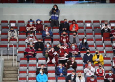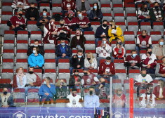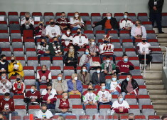Latvijas hokeja izlases fani pulcējas arēnas tribīnēs