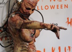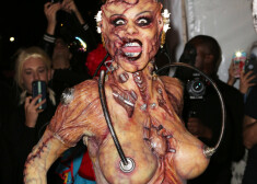 Supermodele Heidija Kluma un viņas Helovīna ballītes viesi 2019. gda 31. oktobrī Ņujorkā.