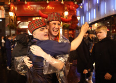 Simtiem Skotijas izlases līdzjutēji pēc mača pulcējās Lesteras laukumā, kur, bruņojušies ar alkoholu, karogiem un sarkanām signālraķetēm, atzīmēja izcīnīto punktu.