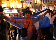 Skotijas fubola izlases fani Londonā līksmo par izcīnīto punktu pret Angliju