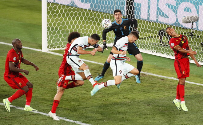 Beļģijas futbola izlase svētdien Seviljā Eiropas meistarsacīkšu finālturnīra astotdaļfināla mačā ar rezultātu 1:0 (1:0) uzvarēja Portugāli, liekot pretiniekiem nolikt pirms pieciem gadiem iegūtās čempionu pilnvaras.