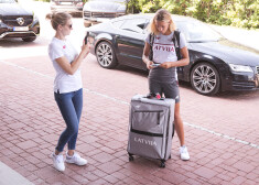 Latvijas olimpieši VIP terminālī gaida lidmašīnu uz Tokiju