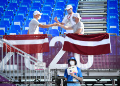 Piekto un sesto maču olimpiskajā turnīrā aizvadīs Latvijas 3x3 basketbola komanda ar Latvijas komandas karognesēju spēļu atklāšanas ceremonijā Agni Čavaru, Nauri Miezi, Kārli Paulu Lasmani un Edgaru Krūmiņu ierindā.