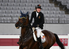 Vācu sportiste Annika Šleija zirga mugurā izplūst asarās