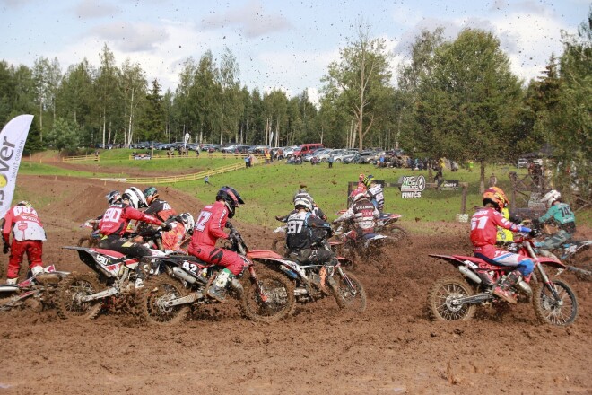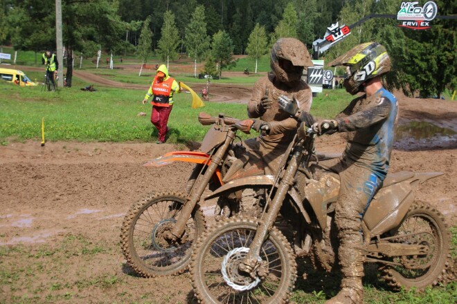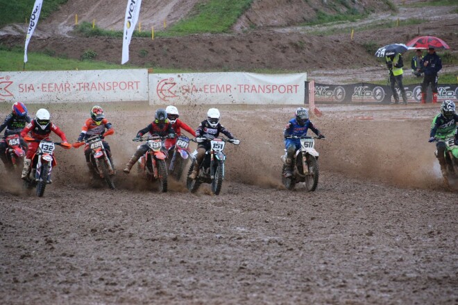 MX1 klases uzvarētājs Toms Macuks (“Rodeo” MX) pastāstīja, ka kvalifikācijas brauciens notika salīdzinoši labā trasē. “Naktī uz svētdienu lija spēcīgs lietus, bet organizators bija labi sagatavojis trasi un kvalifikācijā pat īpaši nebija dubļi. Uzrādīju ātrāko apļa laiku, jutos labi, “ stāsta sportists. Pirms pirmā brauciena sākās lietus un trase bija ļoti dubļaina. “Startā aizbraucu otrais, aiz Kārļa Sabuļa (MX “Moduls”). Bija viena ātrākā līnija trasē, pa kuru varēja pabraukt. Nebija iespējas Kārli apdzīt. Biju noņēmis brilles, varēju piebraukt viņam aizmugurē un veikt pāris “uzbrukumus”. Viņš pats pieļāva dažas kļūdas, līkumā iesprūda, tāpēc sanāca Kārli Sabuli apdzīt un uzvarēt pirmo braucienu,” stāsta Toms. Pēc pirmā brauciena, sportista motociklam vajadzēja uzlikt filtra kastes vāku bez caurumiem. “To es izdarīju tieši pie starta barjeras, kad jau stāvēju uz starta. Tas nav atļauts, bet riskēju un nomainīju. Protams, tiesnesis to redzēja un pēc brauciena par to saņēmu 30 sekunžu sodu, tāpēc paliku otrais. Otrajā braucienā startā aizbraucu kā ceturtais. Salīdzinoši ātri apdzinu priekšā braucošos. Noķēru arī Kārli, sāku viņam “uzbrukt” un vietā, kur biju izdomājis viņu dzīt, viņš pieļāva kļūdu - apgāzās un otro braucienu uzvarēju. Viss, ko varēju, to vinnēju, gan kvalifikāciju, gan abus braucienus. Ātrums ir atgriezies. Jūtos labi. Kopumā viss bija ļoti labi. Tiekamies Apē!” tā Toms Macuks.