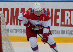 Putins un Lukašenko uz Soču olimpiskās arēnas ledus
