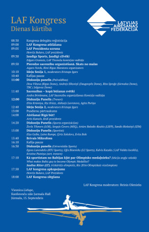 Trešdien, 15. septembrī, viesnīcā “Lielupe”, norisināsies Latvijas airēšanas federācijas Kongress. Kongresa formāts paredz trīs sadaļas – prezentācijas, diskusiju bloku un ideju sesijas. Kongresā uzstāsies vairāk nekā 25 delegāti, to skaitā Rio Olimpisko spēļu sudraba medaļas ieguvējs un Tokijas Olimpiādes finālists Sauļus Riters.