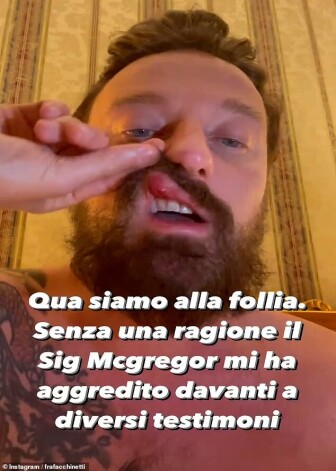 “Jā, tas bija tas ļoti slavenais Konors Makgregors, kurš man iesita pa muti un saplēsa apakšējo lūpu. Viņš salauza man degunu, tecēja asinis,” Fačineti raksta savā “Instagram” stāstā. “Viņš man uzbruka pie “St. Regis” viesnīcas 10 aculiecinieku, viņa draugu un miesassarga priekšā,” turpina dīdžejs.