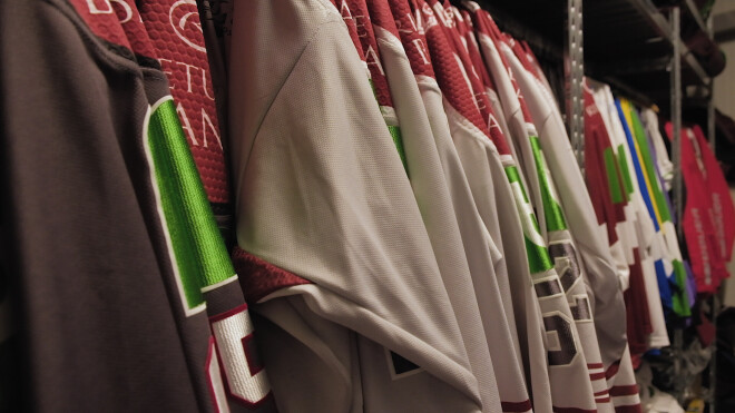 Iemesti vārti, emocijas, uzvaras un zaudējumi – to pamana katrs hokeja līdzjutējs. Taču hokeja virtuvē ir arī otra, neredzamā puse jeb komandas ģērbtuve un ar to saistītas lietas, kur Latvijas izlasē saimnieko ekipējuma menedžeris Agris Bricis. Jauns.lv pavēra Latvijas izlases ģērbtuves durvis, kur ir dažnedažādas darbam nepieciešamas ierīces, sākot ar vienkāršu šujmašīnu un beidzot ar vairākiem slidu asināmajiem aparātiem. Turpat arī spēlētāju formas un ekipējums, citā stūrī pasūtīto nūju kalni. Tagad var tikai pabrīnīties, kā ekipējuma menedžeri ar visiem darbiem tika galā pirms pārcelšanās no “Volvo” halles mazās darbnīciņas uz “Daugavas” stadiona jaunās halles plašumiem.