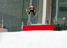 Markuss Vinogradovs ziemeļu divcīņas vidējā tramplīna sacenībās Pekinā