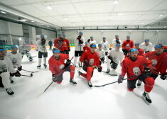 Latvijas hokeja izlase treniņā Tamperē dienu pirms mača ar Čehiju