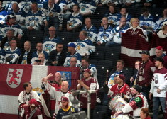 Latvijas hokeja izlases līdzjutēji Tamperē