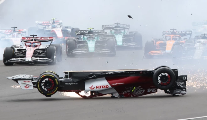 Džou pēc starta sadūrās ar Džordža Rasela vadīto "Mercedes", un viņa "Alfa Romeo" apgāzās, noslīdēja no grants un ietriecās Silverstonas trases aizsargbarjerā.