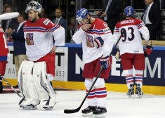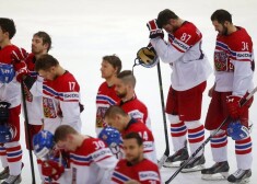 Hokeja pusfināla kaislības bildēs: skumjie čehi un priecīgie krievi