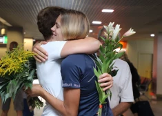 Graudiņa un Kravčenoka Rīgā ieradās neilgi pirms pusnakts un viņas sagaidīja ģimenes locekļi, kā arī tuvākie draugi. Sagaidītāju lokā bija arī Latvijas Volejbola federācijas (LVF) ģenerālsekretārs Arnis Tunte.