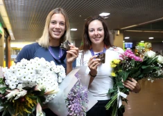 Lidostā Rīgā tiek sagaidītas Eiropas čempiones pludmales volejbolā Graudiņa/Kravčenoka
