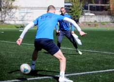 Futbola kluba "Rīgas Futbola skola" treniņš Rīgas Tehniskās universitātes stadionā 7. maijā.