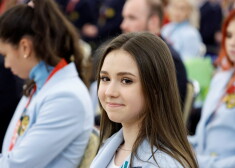 Putins Kremlī godina olimpiskos varoņus un nosvin daiļslidotājas Vaļijevas 16. dzimšanas dienu