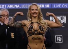 FOTO: boksere Ebanija Bridžesa nemainīgi uz svēršanos ierodas seksīgā apakšveļā