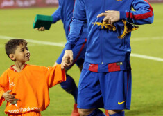 Mazs afgāņu zēns pirms mača uz laukuma izved Mesi