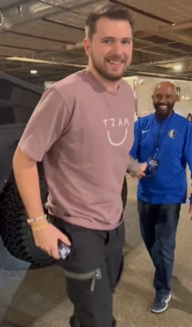 Luka pulled up in a TANK ahead of tonight's game 😳🚛