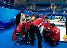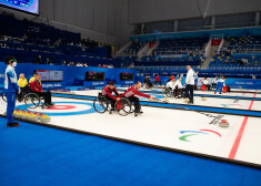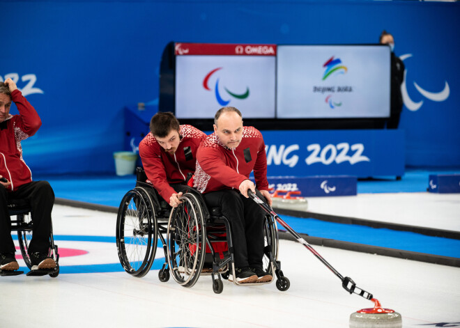 Latvijas ratiņkērlinga izlase Pekinas paralimpiskajās spēlēs pieveic spēcīgo Zviedriju.